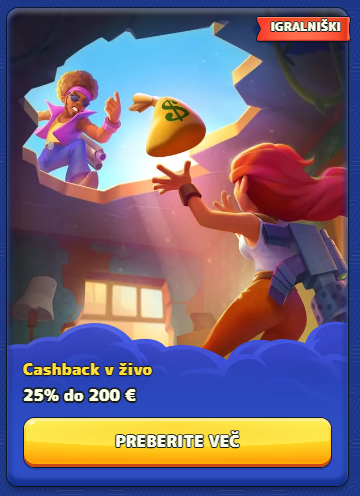 - Min. znesek cashbacka: 5 €.