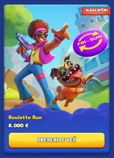Roulette Run – nagradni sklad do 8 000 € (primer aktivnega dogodka).
